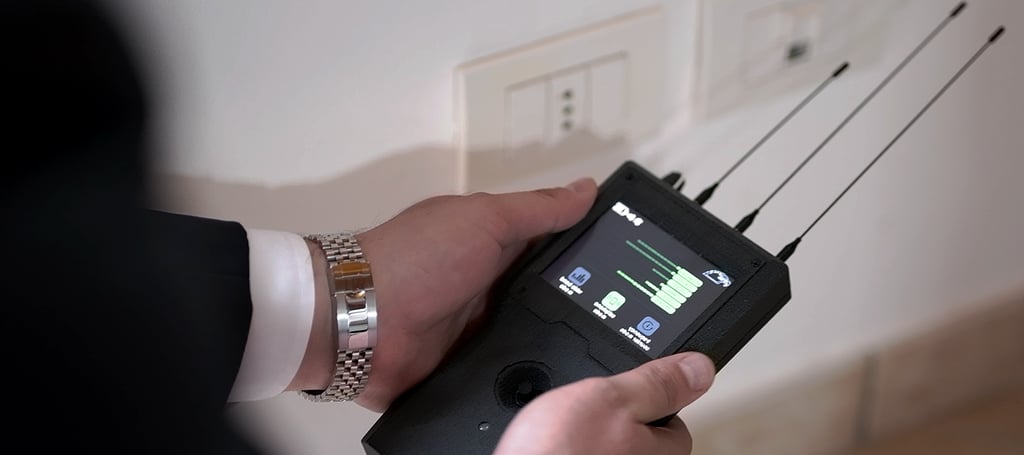 Individuazione e neutralizzazione di microspie audio (microfoni ambientali, micro telecamere, dispositivi GPS, GSM, RF, ecc.).